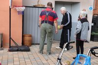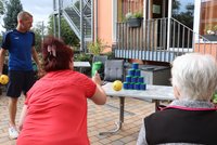 Sie warfen Bälle in einen Korb, brachten mit einem Ball eine Dosenpyramide zum Einsturz oder warfen Ringe auf Stäbe: Bei einem kleinen Sportfest wetteiferten Senioren mit Demenzerkrankung am Mittwoch im Garten des Friedrich-Zimmer-Hauses um Punkte.