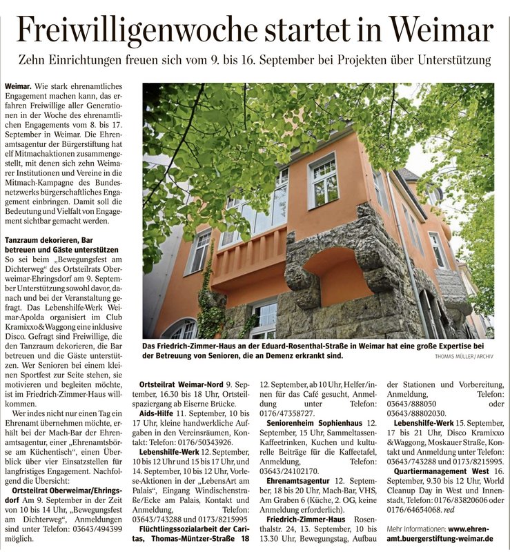 - Freitag, 8.9.: Engagement-Tag der Thüringer Ehrenamtsstiftung