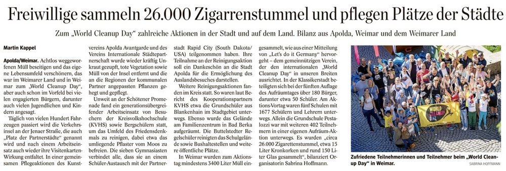 - Samstag 16.9.: World Cleanup Day Weimar (Weimar-West, abgesagt)