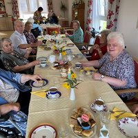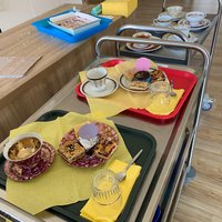 Mit großen Augen reagierten die Bewohner des ausgelagerten Sophienhaus-Wohnbereichs Weimarblick am Dienstag auf das Überraschungskaffeetrinken im Rahmen des Weimarer Ehrenamtswoche 2023. Über die EhrenamtsAgentur der Bürgerstiftung engagierten sich drei Backfrauen mit seniorengerechten Kuchen, die zu hübschen Platten zusammengestellt werden konnten und die dann begeistert verkostet wurden.