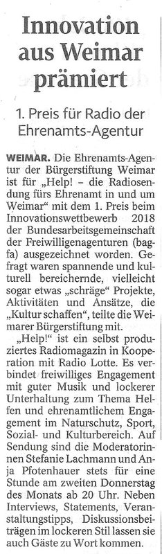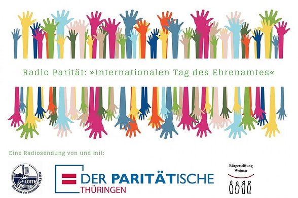Zum internationalen Tag des Ehrenamtes am 5. Dezember, wird es eine Sondersendung im Rahmen der Radiosendung „Radio Parität“ beim Bürgerradio Radio LOTTE Weimar geben. Von 9.00 bis 12.00 Uhr stellen sich verschiedenste gemeinnützige Einrichtungen aus ganz Thüringen in Interviews vor und berichten aus ihren Erfahrungen.