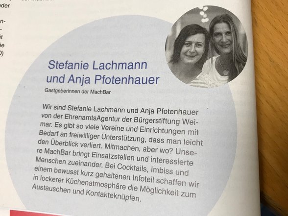 Durch die drei Programmstunden führen Markus Pettelkau, Programmchef bei Radio Lotte Weimar, und Stefanie Lachmann von der Weimarer EhrenamtsAgentur. Der große Sendesaal im Nike-Tempel am Goetheplatz lädt die Interviewpartner vor und nach der Sendung ebenso zum gemeinsamen Austausch ein. Neben Radio LOTTE Weimar wird die Sendung ebenfalls von 5 weiteren Bürgerradios des Freistaates ausgestrahlt.