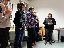 Freiwilligenkoordinatorin Annette Eberhardt beginnt und stellt verschiedene Einsatzmöglichkeiten für Freiwillige beim Lebenshilfe-Werk vor. Hier werden vor allem Freizeitbegleiter für Kinder und betreute Erwachsene sowie Paten für Senioren mit Behinderung gebraucht, aber auch Zeitungsmacher und Redakteure für das Lebenshilfe-Magazin „mittendrin“.