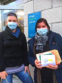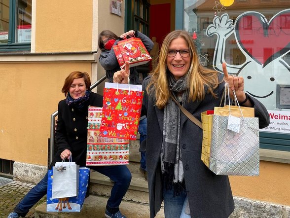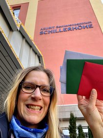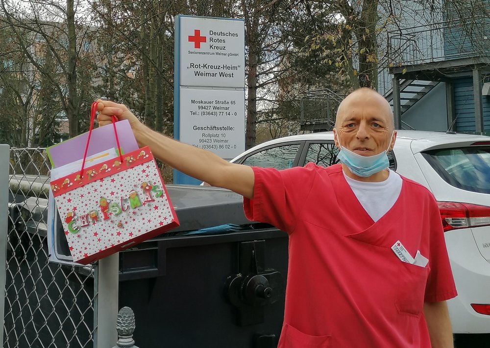 Die Karten haben erhalten: Seniorentreff We-West, Diakonie Altenhilfe Sophienhaus, Friedrich-Zimmer-Haus, Haus Annemarie & Elfriedenheim, das RK-Heim Ettersburg, Marie Seebach Stift, der Pflegedienst Rische, Apotheken und Postboten. Das AWO Pflegezentrum am Hospitalgraben, das betreute Wohnen in der Berkaer Straße und Abraham-Lincoln-Straße des DRK, das Azurit Seniorenzentrum Schillerhöhe und betreute Wohnen Weimarblick. Das DRK Heim Hausknechtstraße und Weimar-West, AWO Seniorenzentrum Am Paradies sowie das Hospiz am Schießhaus, twsd Betreutes Wohnen in der Schwanseestraße und in Legefeld, die Intensive Pflege und Betreutes Wohnen in Bad Berka, das Seniorenzentrum Marie Martha in Blankenhain, das Haus Clara und Heim St. Elisabeth der Caritas sowie das Kursana Domizil in Oberweimar.