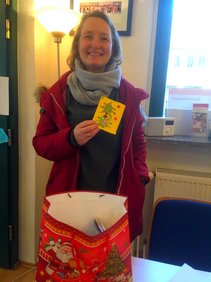 Die Karten kamen von den Kleinen: von der GS Albert-Schweitzer, GS Fürnberg, GS Schöndorf, GS Isseroda, GS Anna Amalia, Kiga Bummi, Kita Hufeland, Kiga An der Windmühle "Wühlmäusegruppe", GS-Kasse aus Erfurt (die Lehrerin wohnt in Weimar) und Hortkindern der Klassen 1a und 1c (Schule leider nicht bekannt) sowie von Menschen jeden Alters aus Weimar und Umgebung, Bad Langensalza, Erfurt, Gera, Leipzig... Sogar aus Weinheim in Baden-Württemberg wurden weihnachtliche Wünsche gesandt.