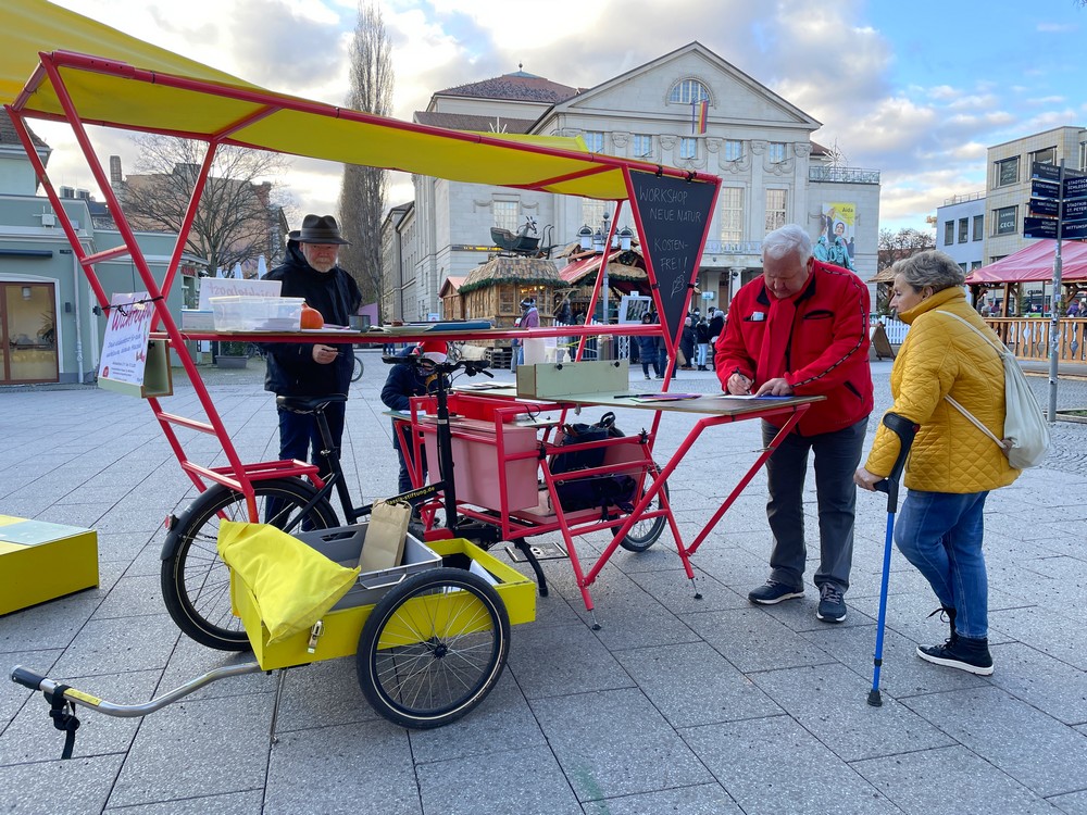 Auch als Briefkasten wurde der außergewöhnliche Stand genutzt und zwei Damen, die die Aktion auch schon im vergangenen Jahr unterstützt hatten, brachten ihre 25 wunderbar gestalteten Karten direkt auf den Theaterplatz.