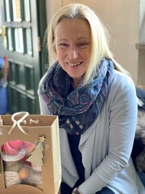Daniela kommt immer zur Adventszeit zu uns und sortiert und packt die großen Stapel der abgegebenen Weihnachtspost und verteilt sie dann mit Sohn Oskar in den Pflegeeinrichtungen.