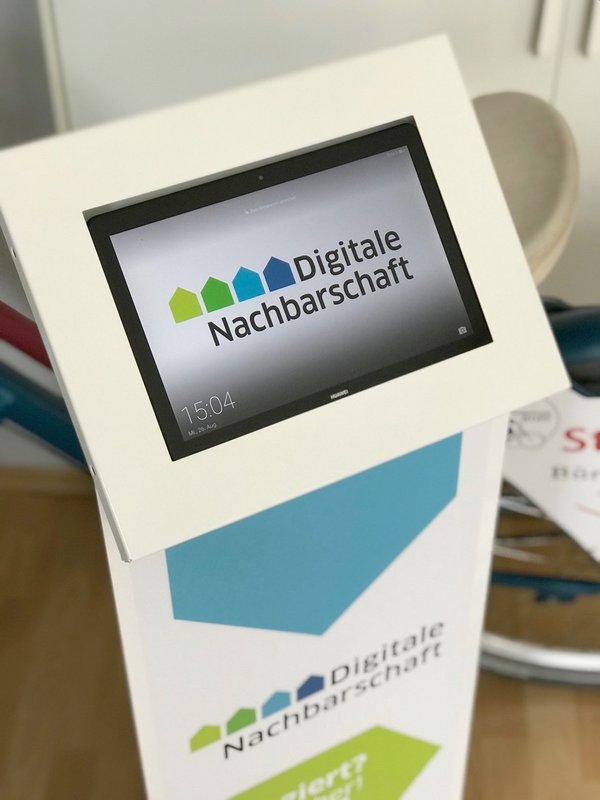 Zum schicken Ständer für die Informationsmaterialien der Digitalen Nachbarschaft (DiNa) hat sich nun auch ein DiNa-Tablet-Ständer in die Beratungsstelle in der Teichgasse gesellt. Denn wir haben gewonnen!