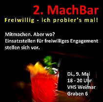 Mit der MachBar möchte die EhrenamtsAgentur verschiedenen Einsatzstellen ermöglichen, mit interessierten Freiwilligen in einem lockeren Rahmen zusammen zu treffen.