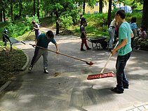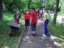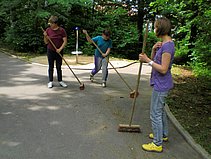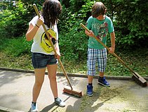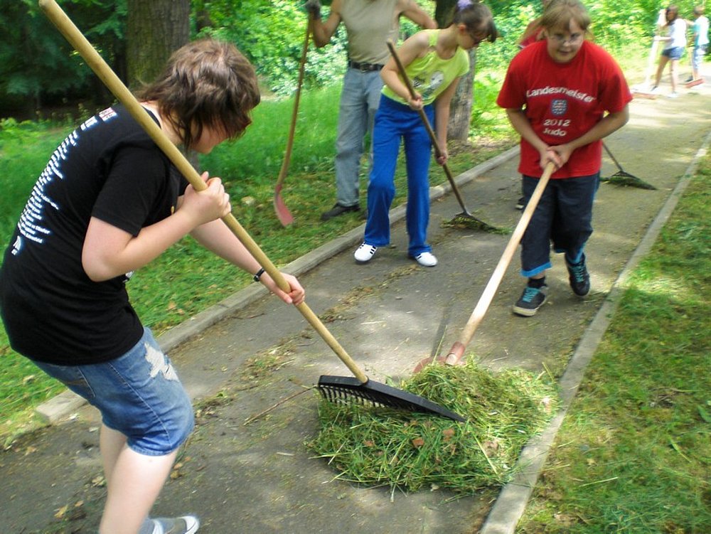 Am 13.6. wurden im Rahmen des Schülerfreiwilligentages 21 Schüler der Diesterweg-Schule in "ihrem" Hasenwäldchen tätig. Mit Hilfe von Mitarbeitern des Betriebshofs und Barbara Backe von den Grünen Wahlverwandtschaften wurde in dem kleinen Park vor der Schule in der Windmühlenstraße geharkt und gerecht. Im Anschluss durfe jedes Kind auf dem Schulgelände noch ein Blümchen pflanzen.