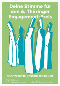 Fünf Kategorien, ein Preis: Der Thüringer Engagement-Preis würdigt herausragenden Einsatz für die Gesellschaft, für den Umwelt-, Natur- oder Tierschutz, für Sport, Kultur und auf zahlreichen anderen Gebieten. Ob Alt oder Jung, ob Einzelperson oder Verein, ob Unternehmen, Stiftung oder Initiative: Jeder ehrenamtlich Engagierte konnte sich um den mit insgesamt 25.000 Euro dotierten Thüringer Engagement-Preis bewerben oder seinen Kandidaten nominieren.