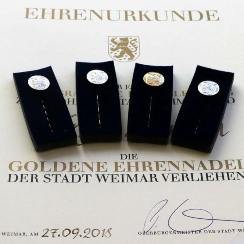 Weitere Informationen zur Verleihung der Ehrennadeln der Stadt Weimar finden Sie hier: stadt.weimar.de/ueber-weimar/preise-und-ehrungen/ ehrennadel/