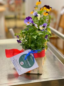 Vielleicht haben Sie an diesem Tag mehrere Leute mit Stiefmütterchen in bunten Töpfen gesehen? In kürzester Zeit hatten Anja Pfotenhauer-W. und Stefanie Lachmann von der EhrenamtsAgentur der Bürgerstiftung die 50 Pflanzen an den Mann oder die Frau gebracht.